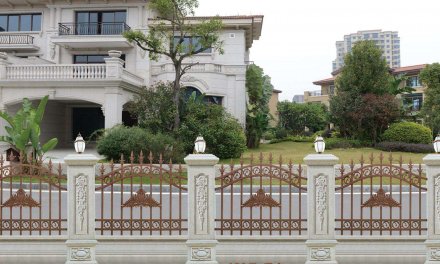 可拆裝,無焊接制作安裝簡便快捷,采用專利的連接件,大大提高安裝效率。運(yùn)輸便捷,一定程度上節(jié)省了運(yùn)費(fèi)。, 一、門框放入門洞時必須上下平行左右垂直,如門洞比門框大一公分以上時,必須用石塊或木塊將門框的膨脹螺絲墊實(shí),在門框左上右下先打膨脹螺絲,不要擰緊,羅馬柱的門應(yīng)先裝羅馬柱到門框上,然后再放入門洞。, 為了避免金屬生銹,能夠按期用棉布蘸上少量的防銹油或縫紉機(jī)油擦拭表層局部,堅(jiān)持鐵藝欄桿光亮如新。, 高級鐵藝制作的表面裝飾效果漆色彩豐富,多采用進(jìn)口漆手繪,既古樸典雅,又時尚流行.最經(jīng)典的表面裝飾效果漆有青古銅色、紅古銅色、古銅金、黑色、銅金邊、白色金邊等。, 1、造價比較實(shí)會。